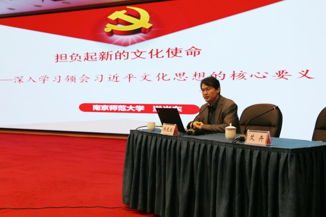 为学习宣传贯彻党的二十届三中全会精神,深刻把握习近平文化思想和“两个结合”的重大意义,省侨联召开党组理论学习中心组学习(扩大)会,邀请南京师范大学马克思主义学院副院长洪光东教授对习近平文化思想作专题辅导报告。会机关全体党员干部参加,省侨联党组成员、副主席、机关党委书记艾卉主持报告会?;崆埃鞯持Р孔橹傲恕断敖叫率贝泄厣缁嶂饕逅枷胙案僖?023年版)》《习近平总书记在文化传承发展座谈会上的讲话》《中国共产党宣传工作简史》等辅导材料。